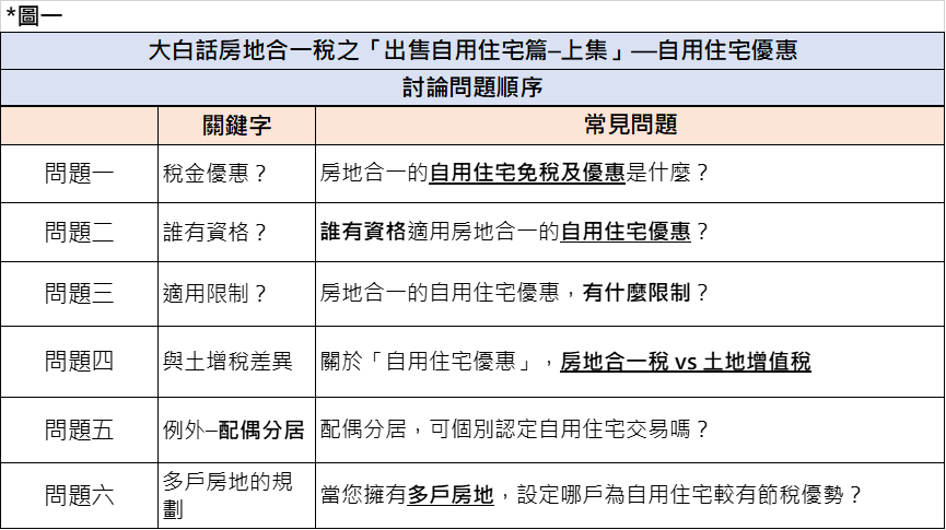 問題一:房地合一的自用住宅免稅及優惠是什麼?